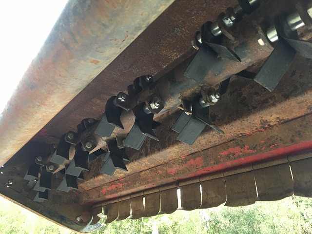 刈刃はフリーで動くフレールタイプですから、草の巻きつきが少なく、石等の硬いものにあたっても破損しにくい構造です。刈刃軸が高速回転するので、爪跡がきれいで、しかも作業速度が速いのが特徴です。